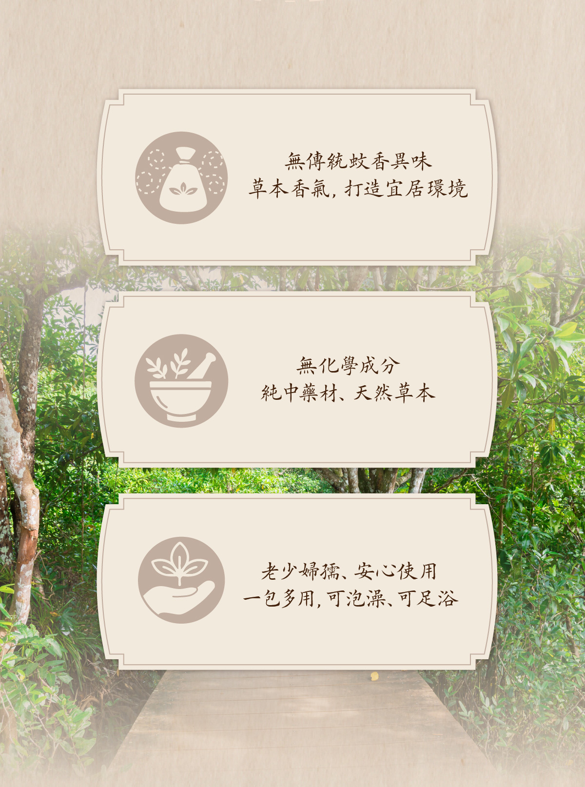 草本成分釋放的自然香氣有效驅趕蚊子,