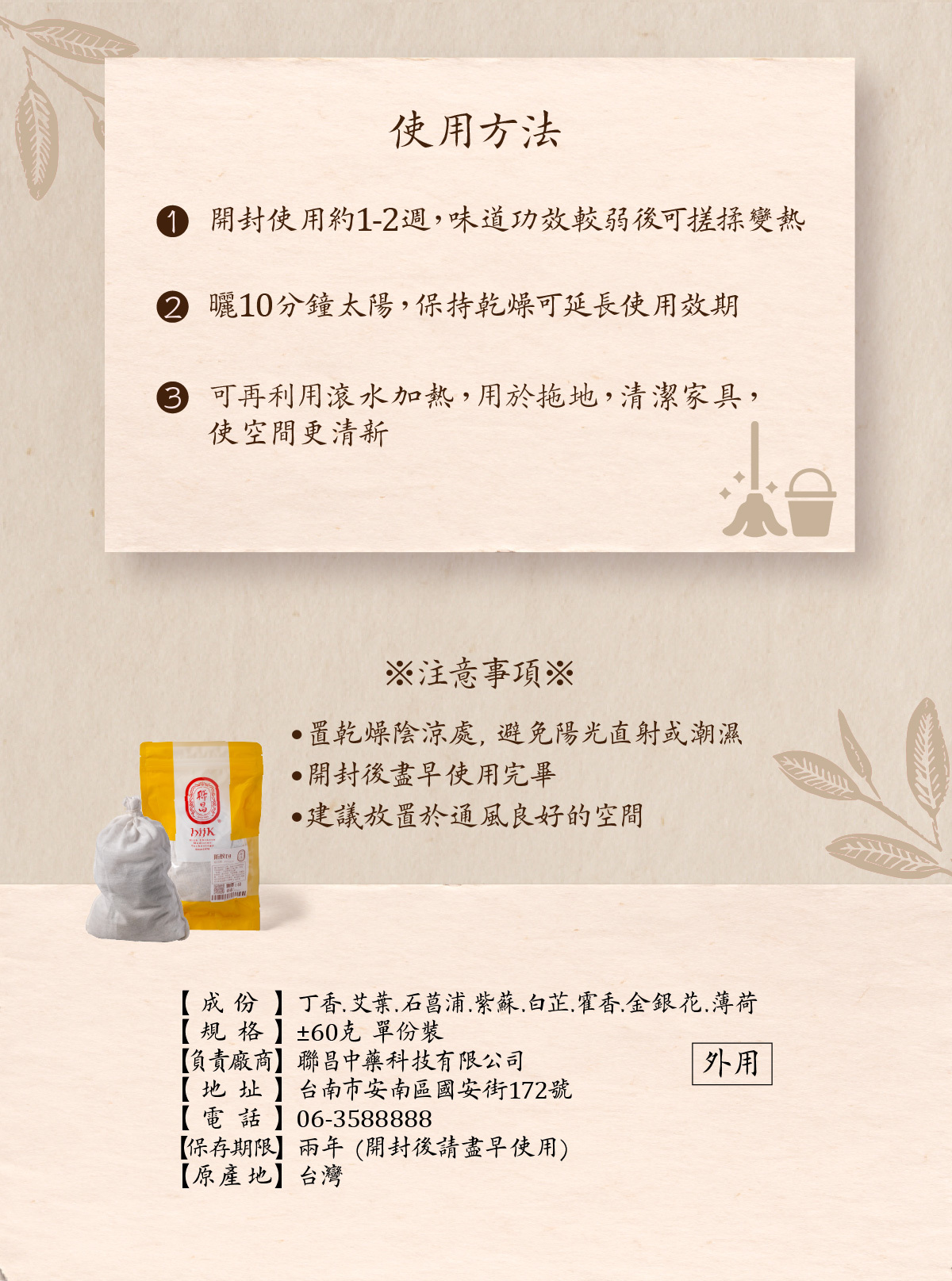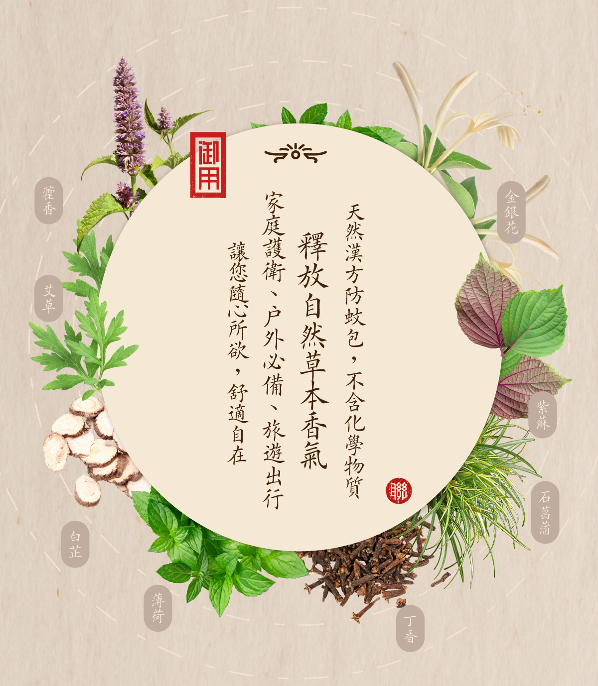 主要成分 │丁香.艾葉.石菖浦.紫蘇.白芷.霍香.金銀花.薄荷
